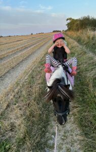Presentation: Min ponny heter Daisy och hon är världens snällaste shettis. Med henne kan jag göra vad jag vill och favoriten är att galoppera i skogen. Men jag brukar också allt som oftast låna min storasysters tävlings ponnysar Princess och Poppy. Att hoppa och rida ut i skogen är det bästa som finns.