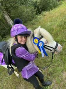 Presentation: Jag har ridit i hela mitt liv och våren 2025 fick jag shettisen Princess för att kunna utveckla min ridning och vi började även tävla. Vi har precis köpt en b-ponny som kallas Poppy. Jag hoppas att hon kan bli min framtida tävlingsponny.